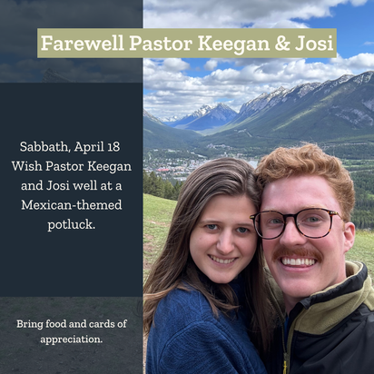 Pastor Keegan’s last Sabbath with us will be April 18. Please join us in wishing him and Josi a fond farewell at a special Mexican-themed potluck after the worship service that day. A basket will be available to receive cards expressing your love and appreciation to Pastor Keegan and Josi for their ministry here. If you wish to make a contribution as a token of your thanks, please include it with your card.